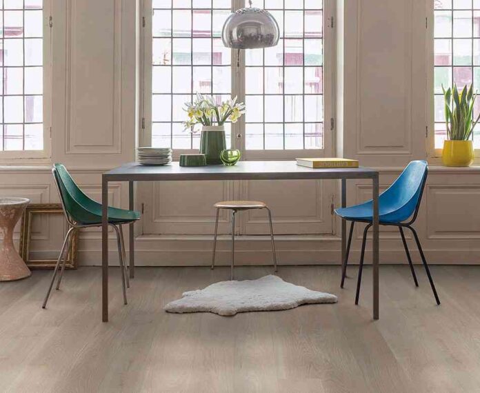 También es importante evitar que le de el sol directo. Es uno de los grandes enemigos de la madera, porque se come el color. Así que, si no quieres que al cabo de los años, tu suelo muestre zonas decoloradas por el sol, instala cortinas o estores que controlen las radiaciones solares para proteger la parte del suelo cercana a las ventanas.