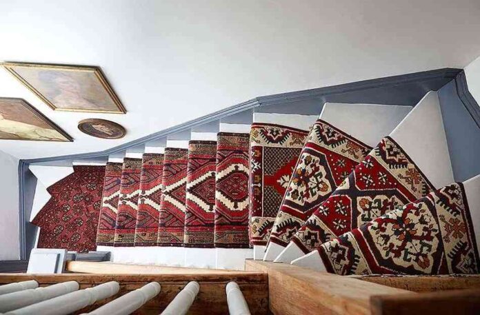 Tener una escalera en casa es una suerte, y no solo porque seguramente ello implica, además de más plantas, más amplitud y espacio de uso. También supone mayores posibilidades decorativas. Y si no, fíjate en esta alfombra vintage para la escalera. ¿No te parece absolutamente genial?