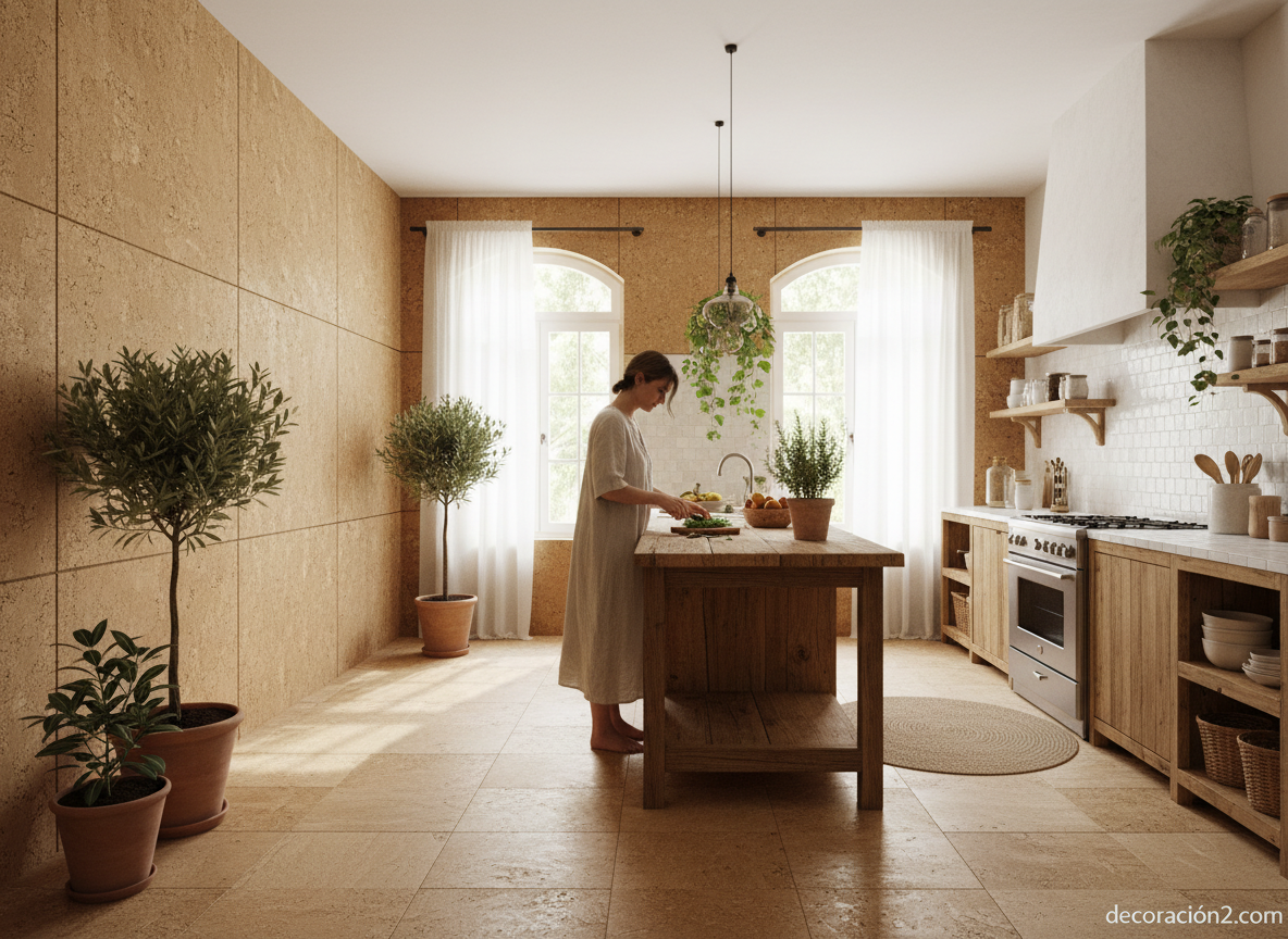 El corcho es uno de esos materiales que durante mucho tiempo quedó relegado a los tablones de anuncios y los tapones de botella. Sin embargo, en los últimos años ha conquistado un lugar destacado en el interiorismo, especialmente en la cocina. Su textura cálida, su capacidad aislante y su aspecto orgánico lo convierten en una opción cada vez más valorada por quienes buscan un hogar con personalidad y respeto por el medio ambiente.