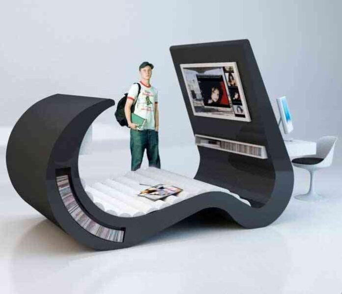Diseñado específicamente para adolescentes, la cama Onda Chaise, se encuentra completamente equipada para el disfrute y la comodidad del usuario. Por ello esta dispuesta con un televisor que nos acompañe en los momentos de ocio, solo o acompañado. El DVD para completar y poder ponernos cómodos mientras vemos una interesante película.
