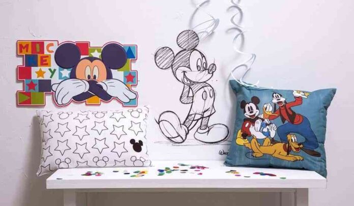 Mickey Mouse puede estar en todas partes donde tú quieras verlo. Se han diseñado papeles pintados y todo tipo de textiles (desde cortinas y estores hasta colchas, edredones y ropa de cama). También stickers y vinilos adhesivos para decorar las paredes. Y otras muchas cosas: lámparas divertidas, muebles auxiliares, percheros, etc.