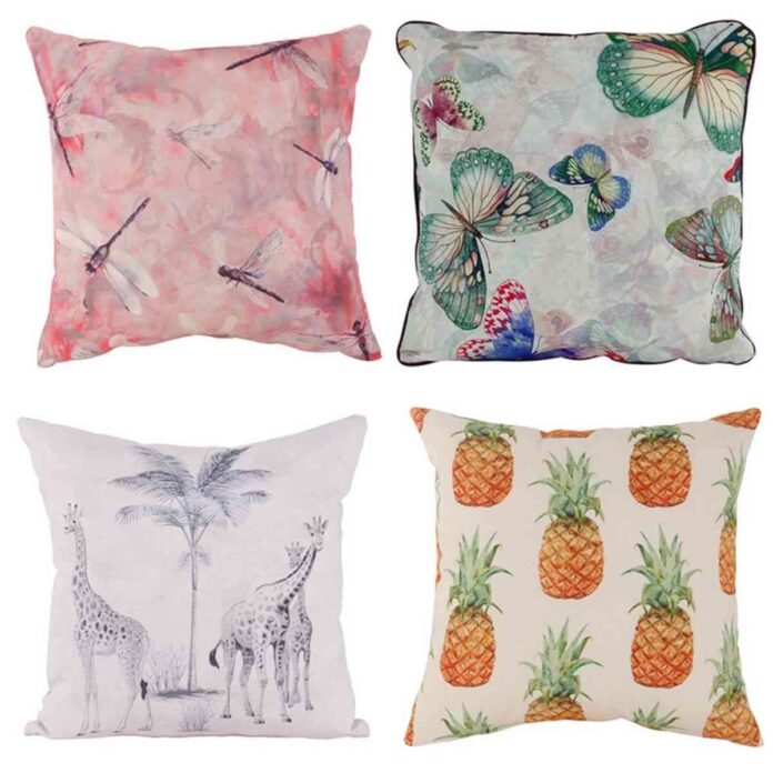 Los estampados de libélulas y mariposas, así como los toques tropicales de frutas como la piña y los aires africanos de las jirafas, son elementos de gran actualidad que pueden transformar la decoración de tu dormitorio o salón dotándola de actualidad cromática y temática.