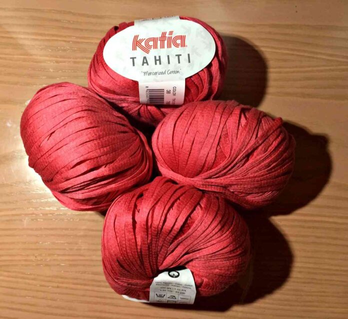 - Necesitaremos 6 ovillos de lana gama TAHITÍ (en realidad no es lana sino algodón peinado y mercerizado). Yo he usado el color de lana que venía en el ejemplo en la web de Katia (fucsia 19), porque me pareció muy llamativo, pero podéis recurrir el color que más os guste. En la web de Katia podéis ver todos los disponibles.