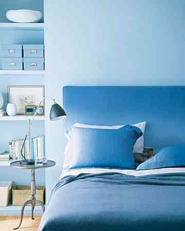Las paredes pueden estar pintadas en tonos de azul para crear un ambiente pacífico, moderno y muy confortable. Puedes escoger entre pintar toda la habitación o solamente una parte de ella.