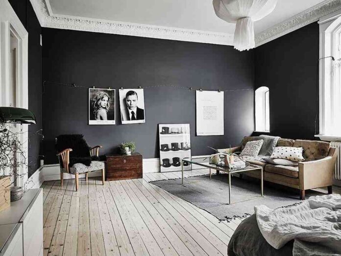 Una manera de compensar esta pérdida de claridad es reservar las superficies más próximas a la entrada de luz natural para introducir ahí ese revestimiento de pintura negra que ya estamos deseando ver aplicado. Como la pared que rodea a un balcón o un ventanal. Focalizado en esa zona se notará menos y a cambio habremos logrado una solución decorativa original.