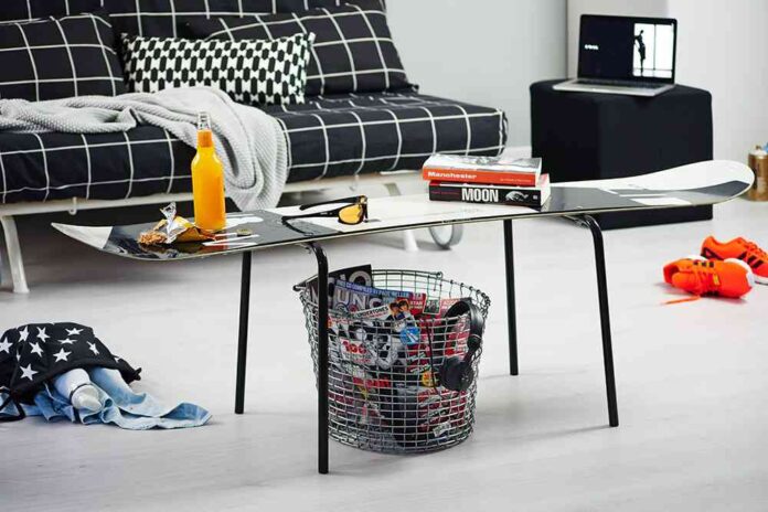 Si tienes una vieja tabla de snow de cuanto quisiste aprender a practicar ese deporte y lleva años muerta de risa en un rincón del trastero, ahora es el momento de darle un nuevo uso: conviértela en una práctica y decorativa mesa de centro. La idea es de Bosch Bricolaje.