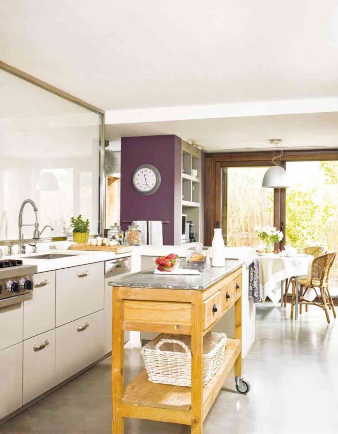 Por ejemplo una mesa auxiliar con cajoneras puede ser una isla perfecta para una cocina pequeña, incluso esas mesas auxiliares que son abatibles. No es necesario que la tengas que colocar justo en medio de la cocina, porque en los espacios pequeños es mucho más funcional si la colocas en el lateral, siendo una isla con funciones de mesa auxiliar. Deberás tener en cuenta el tamaño de la mesa, los materiales y las tonalidades para que encaje en la decoración de tu cocina, un consejo: las de madera con una parte abatible suelen ir bien a todo tipo de decoración. ¡Totalmente funcional y práctico!
