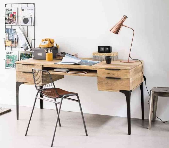 Ni solo madera, ni solo metal. Mejor, las dos cosas. La combinación de materiales puede ser la clave que dará como resultado tu escritorio ideal. Lo más frecuente es que encuentres modelos con las patas de hierro y el tablero de madera.