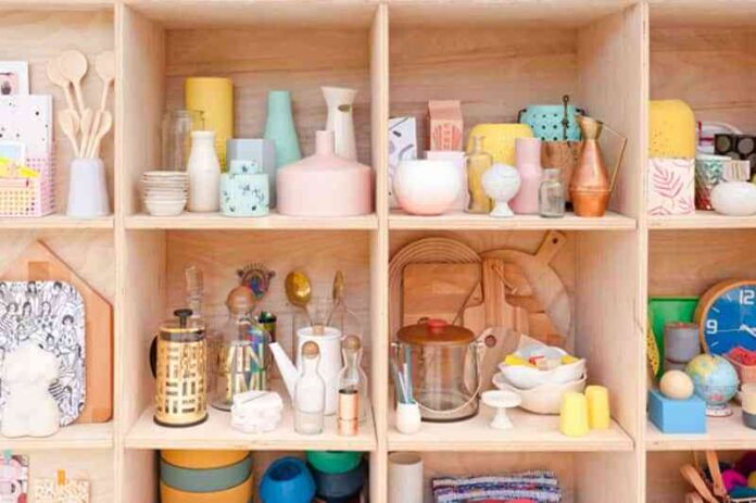 Una vez tengas claro el diseño y las medidas, construye el armazón de la estantería con madera de contrachapado. Después añade el fondo y coloca la estantería en su sitio, asegúrala bien para que no se mueva y… ¡listo! Ya tienes tu estantería para guardar cosas pequeñas.