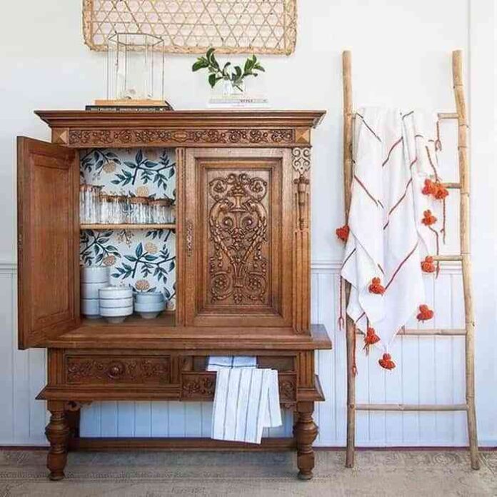 Sea como sea, la mayoría de estos muebles viejos y destartalados tienen el interior de puertas y cajones un tanto deteriorados. Después de recuperarlos con pintura, por ejemplo, es una gran idea forrar el interior con papel pintado para tapar las manchas y rozaduras que puedan tener, y para darles un toque personal. Como ves, ¡no puede quedar mejor!