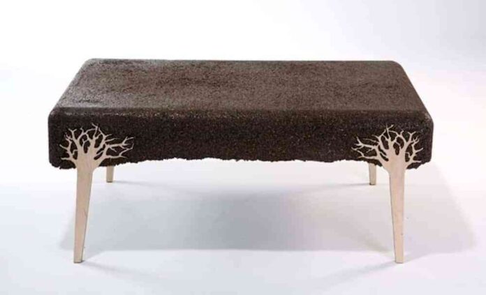 La primera pieza para mi amiga-cliente será este banco del diseñador israelí YOAV AVINOAM, fabricado con aserrín de madera mezclado con resina y prensado en molde. El diseño, romántico, simbólico, pictórico, Kitsch, representa un bosque conformado por cuatro árboles (que son las patas del banco) y su fronda (la silla). Un muy buen comienzo para el piso que va a querer ser pero nunca será.