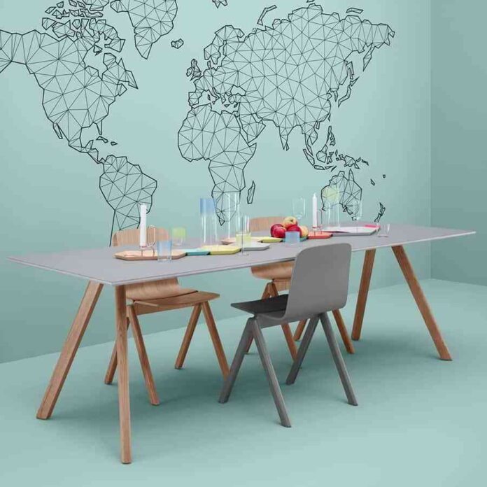 Los mapamundis de gran tamaño, tipo murales, son fantásticos para decorar la pared principal de un salón o un comedor como un recurso de gran fuerza visual. Elige un modelo con dibujos de todos los continentes, como si fueran siluetas que se despliegan formando bellas figuras geométricas de lado a lado de la pared.