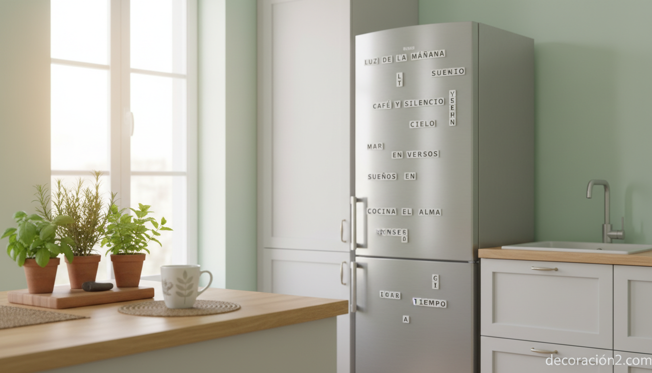 Las palabras imantadas para nevera son uno de esos pequeños inventos que combinan a la perfección decoración, juego y comunicación cotidiana. Una caja repleta de imanes con palabras sueltas convierte la puerta del frigorífico en un lienzo creativo donde escribir versos improvisados, recordatorios para los niños, listas de la compra o declaraciones de amor a quien convive contigo. La idea no es nueva (la poesía magnética nació en los años 90 de la mano del artista Dave Kapell), pero sigue siendo una forma deliciosamente analógica de decorar y de fomentar la creatividad sin pantallas. En esta guía repasamos su origen, los modelos disponibles, ideas para usarlas y consejos para integrarlas con buen gusto en tu cocina.