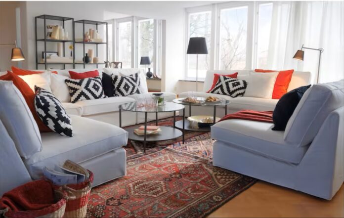 La distancia entre la mesa de centro y el sofá o los asientos debe ser de unos 40 a 50 cm, para dejar espacio suficiente para las piernas y el paso.