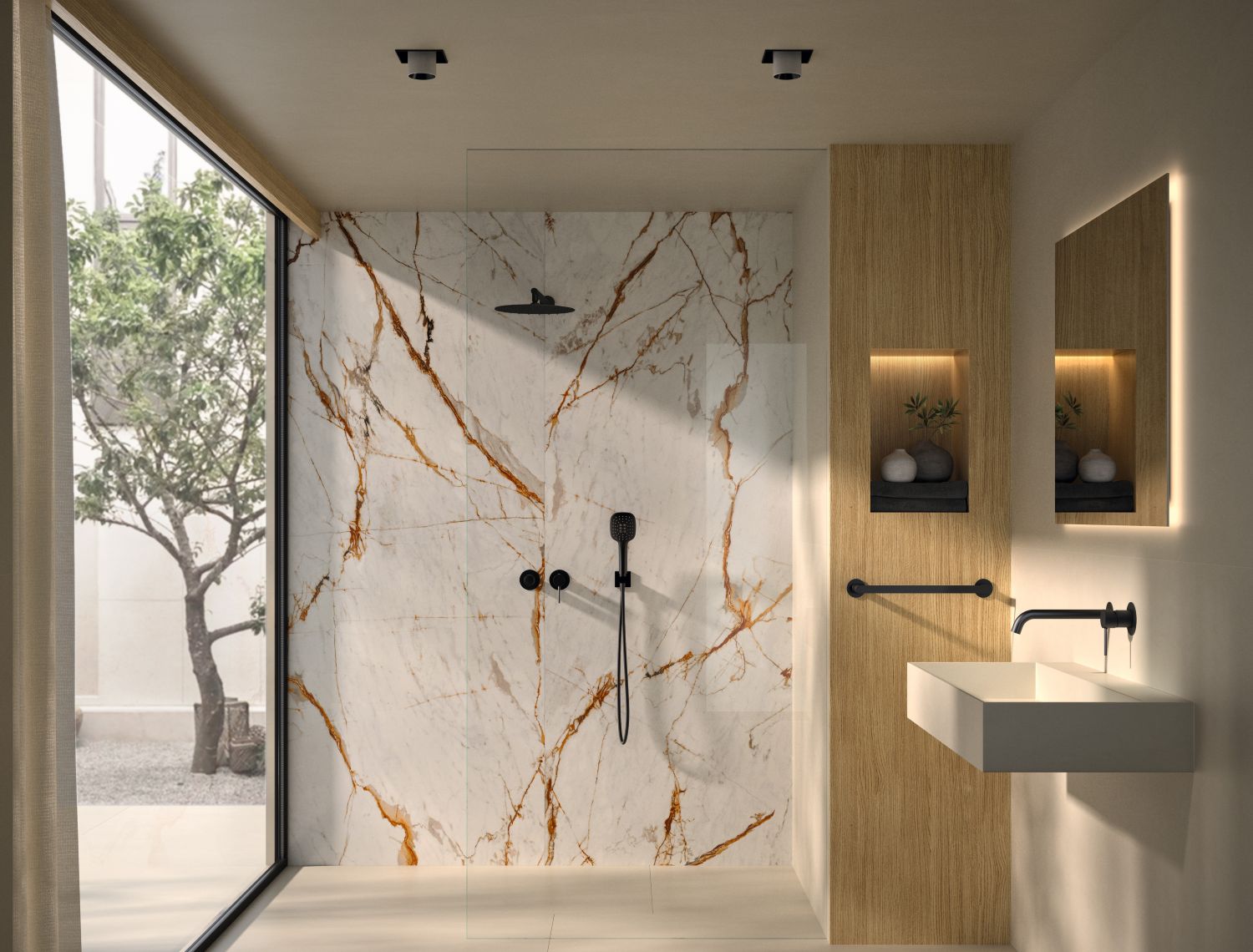 Gracias a esta instalación empotrada, se consigue diseñar conjuntos de ducha a medida, desde combinaciones con rociador y teleducha, hasta configuraciones más completas con salidas adicionales para jets corporales o caño de bañera, manteniendo siempre una estética ordenada y minimalista en la zona de agua.