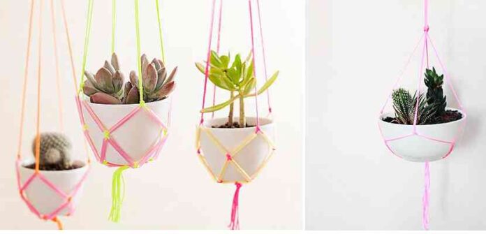 Antiguamente este tipo de portamacetas de macramé solían tener un acabado en colores crudos, pero hoy los puedes encontrar (¡o crear!) de los colores que más te gusten y que vayan acorde a tu decoración ya sea en el salón, en la cocina, en el lavabo, en la terraza, en el balcón…¡dónde tú quieras!