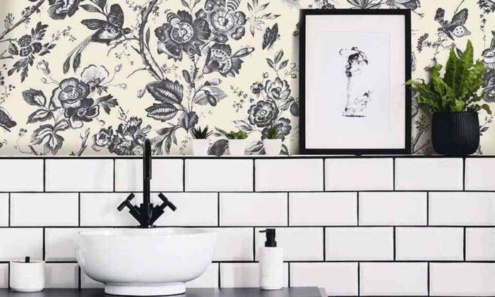 Y quien dice un lavamanos, dice una bañera. ¿Eres de los privilegiados que tiene un cuarto de baño grande? Transfórmalo en tu «templo del relax». Puedes empapelar la pared con un precioso diseño, como este de flores, y colocar una bañera con patas.