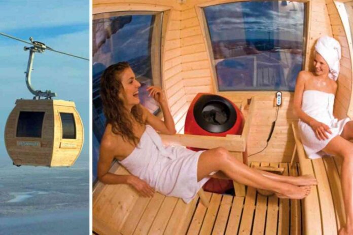 Esta sauna forma parte del complejo de Snow Village en Lainiotie, Finlandia y está diseñado por Doppelmayr. Sin duda es una sauna original e increíble para disfrutar del calor en las alturas.