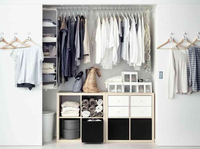 Coloca la ropa larga en su sitio y cuelga la ropa corta ordenada: los pantalones juntos, las camisas también, las chaquetas, etc. Después le toca el turno a la ropa doblada que va en las baldas y en los cajones. Revisa cada prenda y ordénalas.