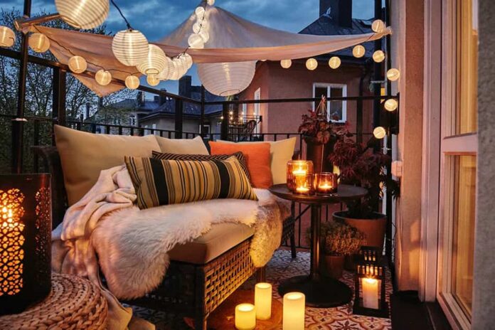 Elige mantas de pelo para poner en los asientos, cojines con texturas suaves, y plaids abrigados y de tacto agradable para taparte si lo necesitas. Te sentirás genial en tu terraza en otoño… ¡y hasta en invierno!