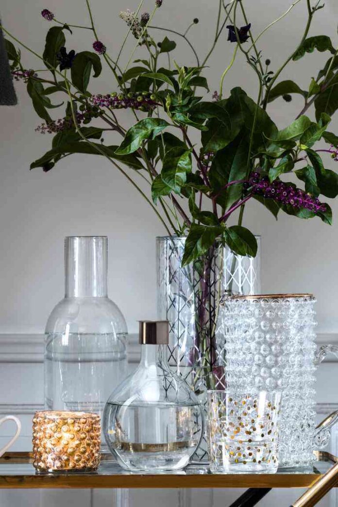 Cuando hay una fiesta en casa llega el momento de usar todas esas piezas especiales que no se usan en el día a día. Como las botellas de cristal que, además de cumplir su función, decoran el mueble bar.