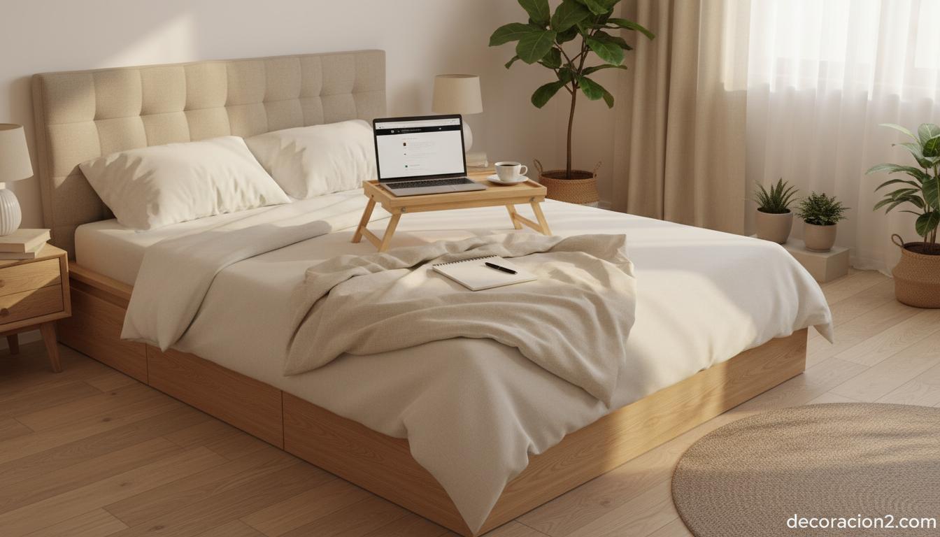 El escritorio para la cama es uno de esos muebles auxiliares que parecen pensados para situaciones puntuales y, en realidad, terminan convirtiéndose en una ayuda casi diaria. Desayunos en la cama del fin de semana, jornadas de teletrabajo desde el dormitorio, lecturas largas, dibujo, manualidades o ese día de gripe en el que conviene seguir trabajando sin levantarse del colchón. Una bandeja escritorio bien diseñada lo cambia todo: estabiliza el ordenador, recoge las migas, sostiene los libros y libera tu espalda de posturas imposibles.