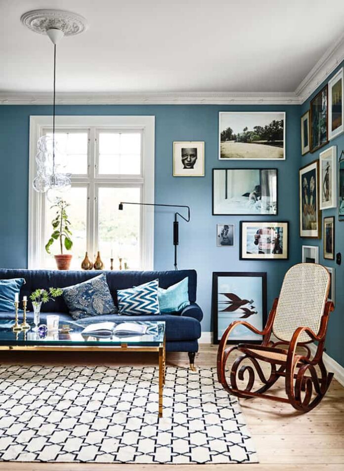 El azul está en todas partes: en los sofás, en las paredes, en los muebles, en los marcos de las puertas, etc. Y casi siempre se trata de tonos oscuros, intensos y con mucha personalidad.
